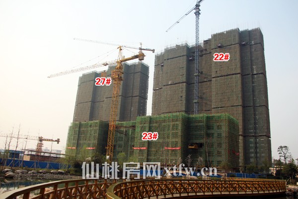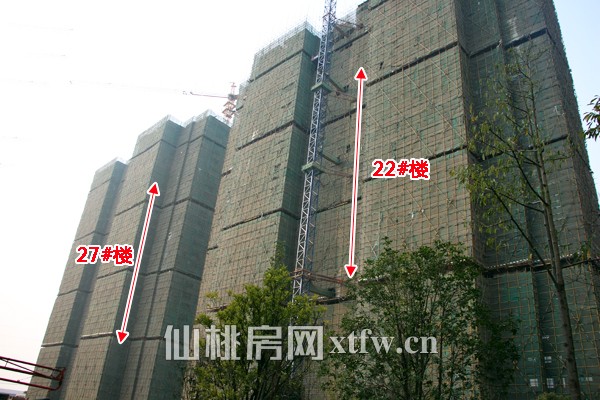 27#楼:主体结构施工到30层,东单元28层梁板钢筋绑扎,墙柱模安装;西单元28层墙柱钢筋绑扎,粱板模安装。