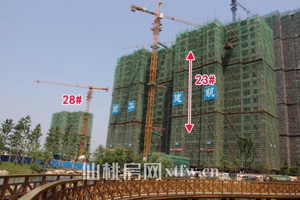 20#楼:正在进行内部施工,内墙抹灰、涂料施工、入户门门框安装、楼层垃圾清理。