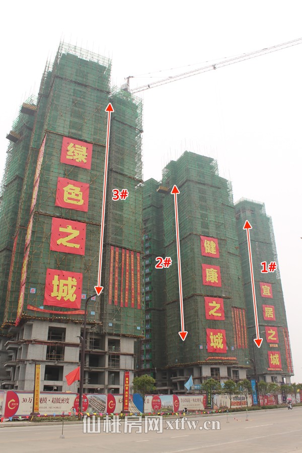 1、高层1#、2#已封顶,下一步进行脚手架拆除,3#即将封顶;