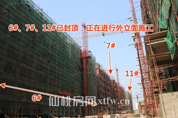 6#、7#、11#已封顶,正在进行外立面施工