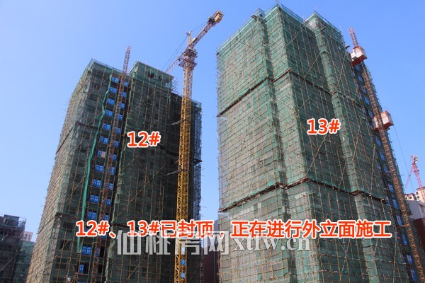 12#/13#已封顶,正进行外立面施工