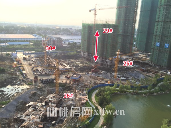 29#楼主体结构至17层;30#楼正在进行基础施工;25#楼基础施工;26#楼基础结构施工。