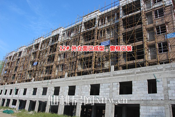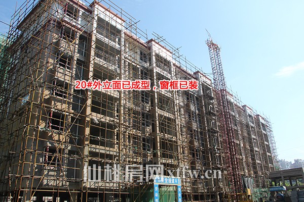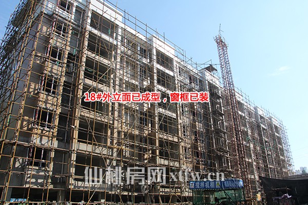 12#、18#、20#楼外立面已成型,已完成窗框安装。