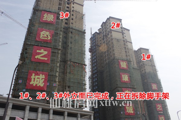1#、2#、3#外立面已完成,正在拆除脚手架