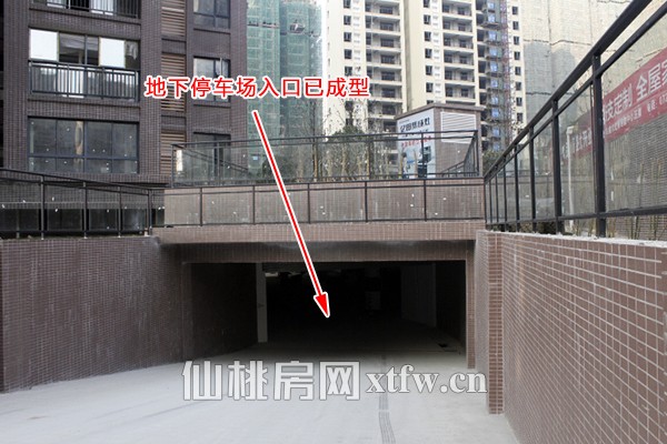 7、四期地下停车场入口已成型,小区入口岗亭已成型;