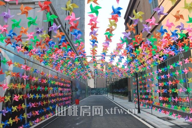 一进入小区入口处,便是满眼的风车廊,阳光熙熙、微风徐徐吹过,仿佛进入了一个通话王国。