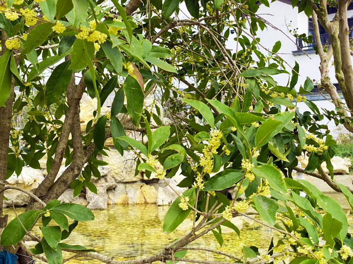 各色鲜花围绕清流潺潺,充满灵动自然韵味