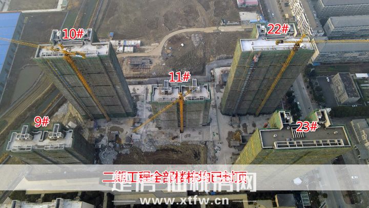二期项目工程正在施工中,所有楼栋主体架构均已封顶;