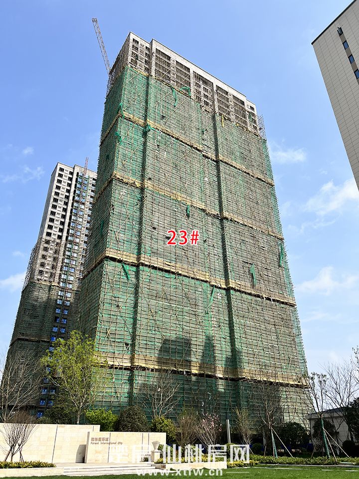 项目二期9#、10#、11#、22#、23#楼正在如火如荼进行中,主体构架均以封顶,22#和23#楼已开始拆除脚手架