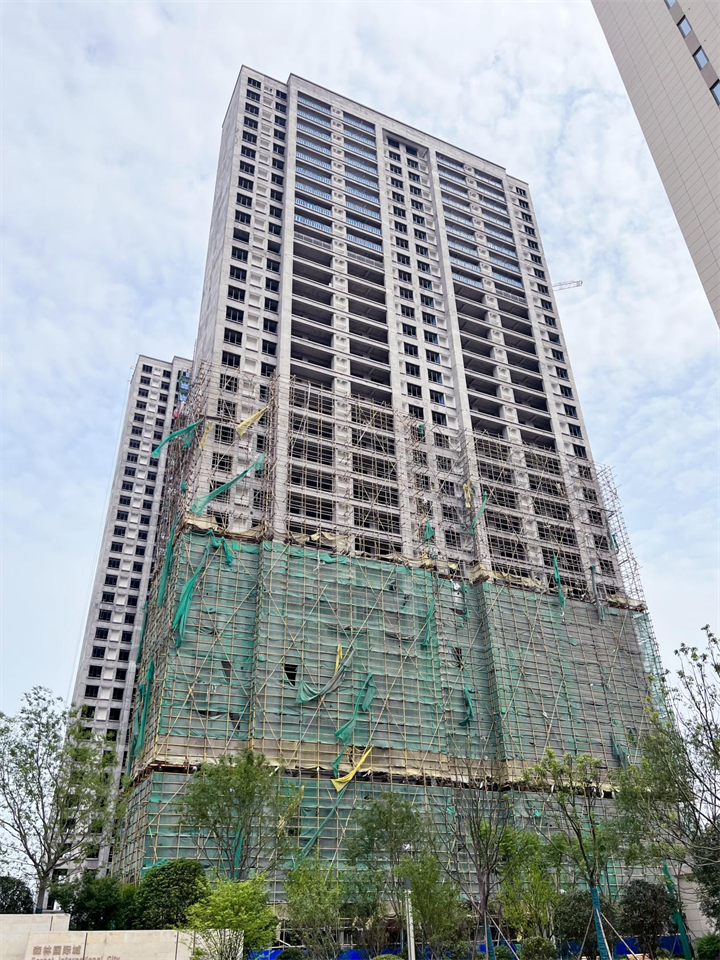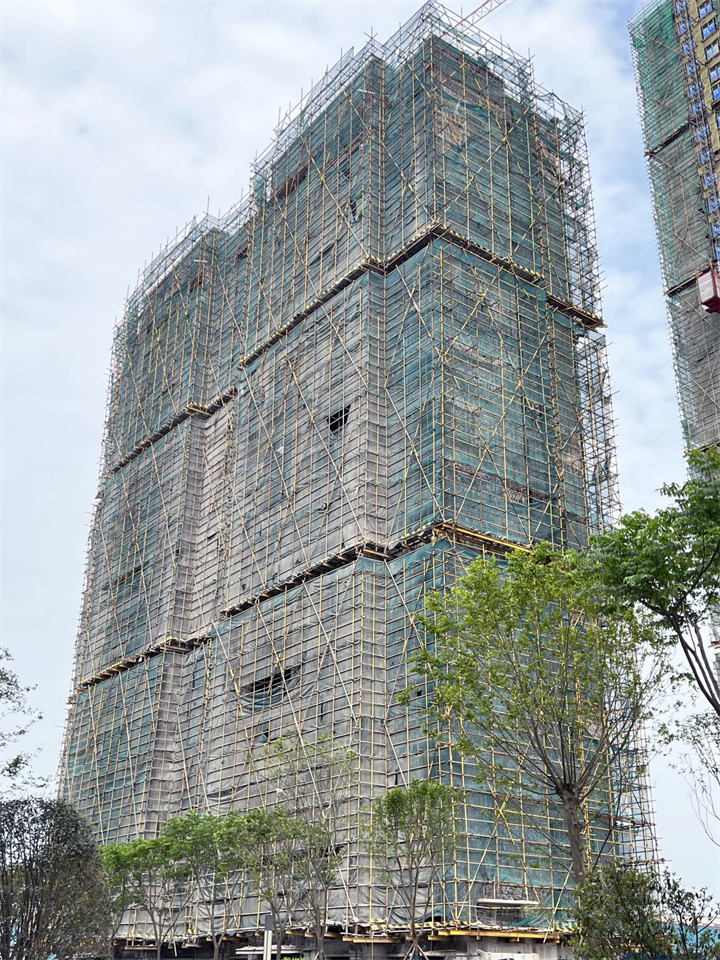 (二期23#实拍图,正在拆除脚手架、门窗护栏安装)