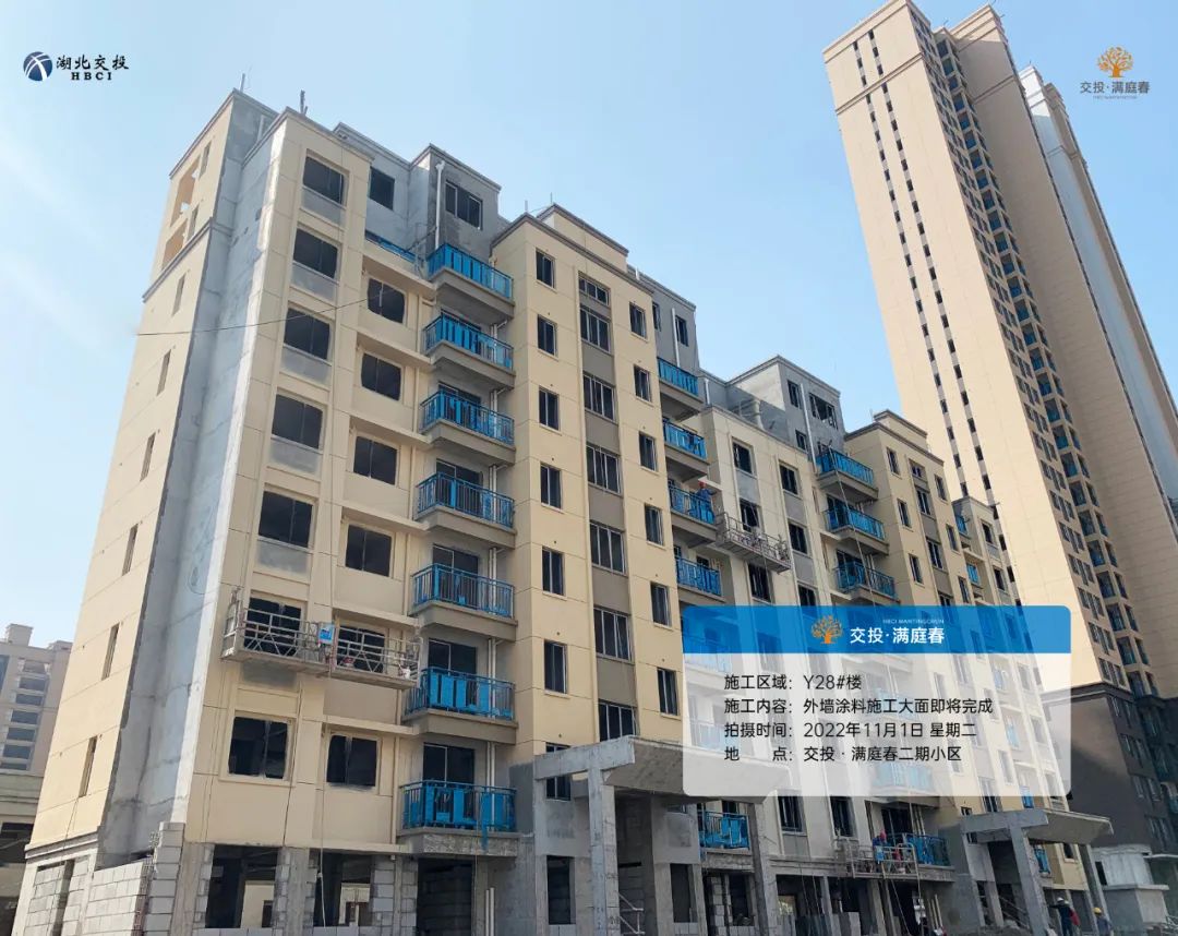 项目Y28#楼外墙涂料施工大面完成;