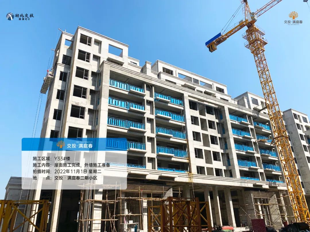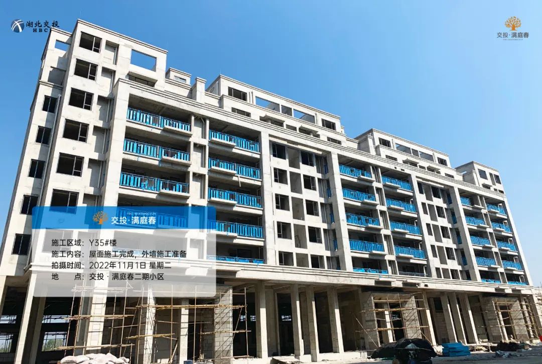 屋面施工完成,外墙施工准备;