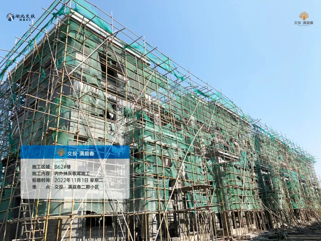 项目B62#楼内外抹灰收尾施工;