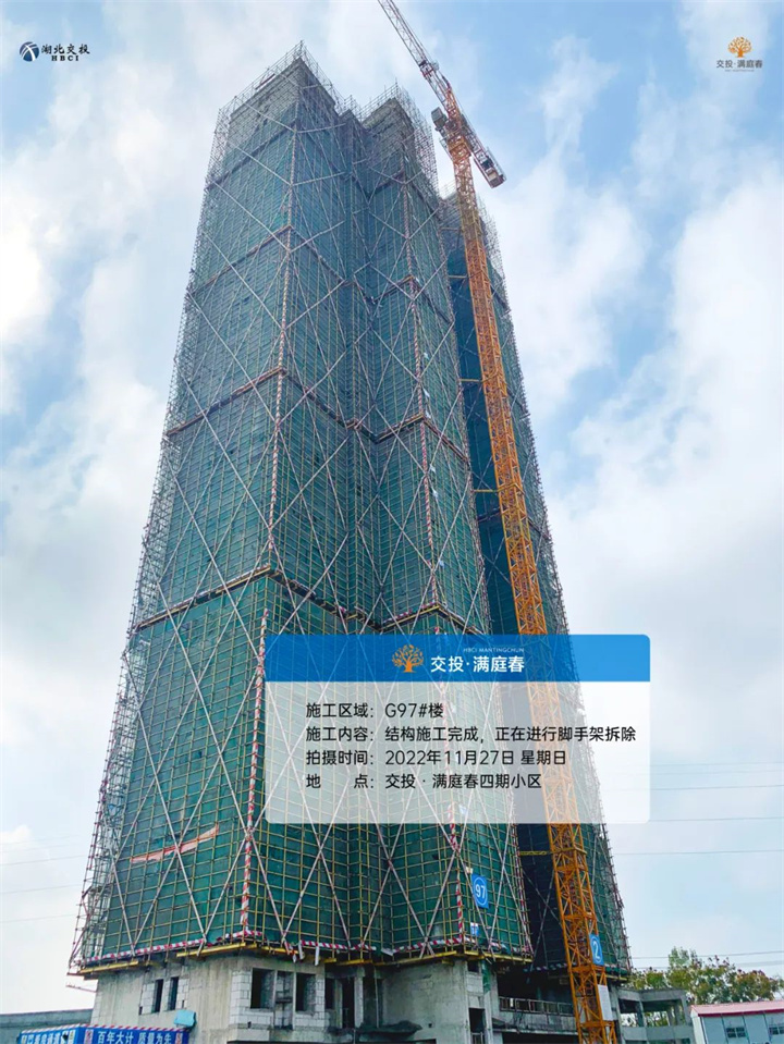 G97#楼主体结构、二次结构施工完成,正在进行脚手架拆除;