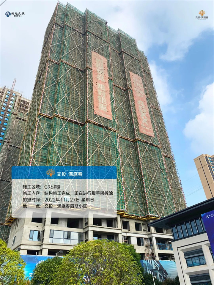 G96#楼主体结构、二次结构施工完成,正在进行脚手架拆除;