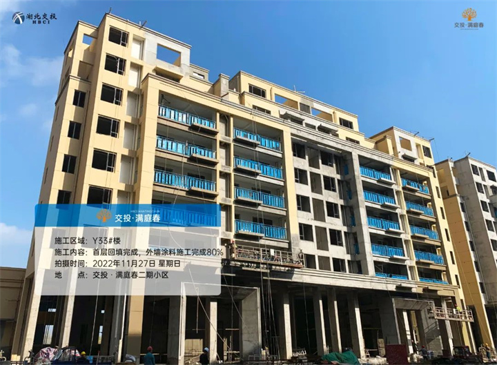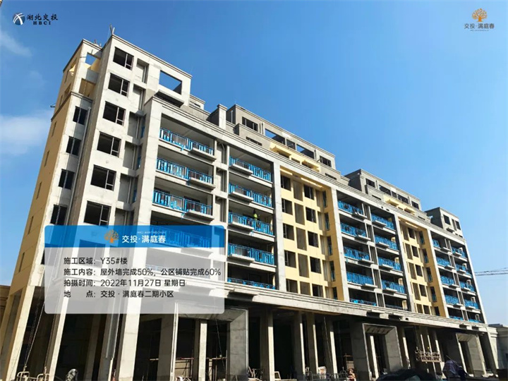 Y35#楼屋外墙施工完成50%,公区铺贴完成60%;