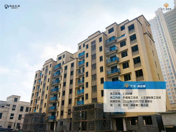 Y28#楼外墙施工完成,公区铺贴施工完成;