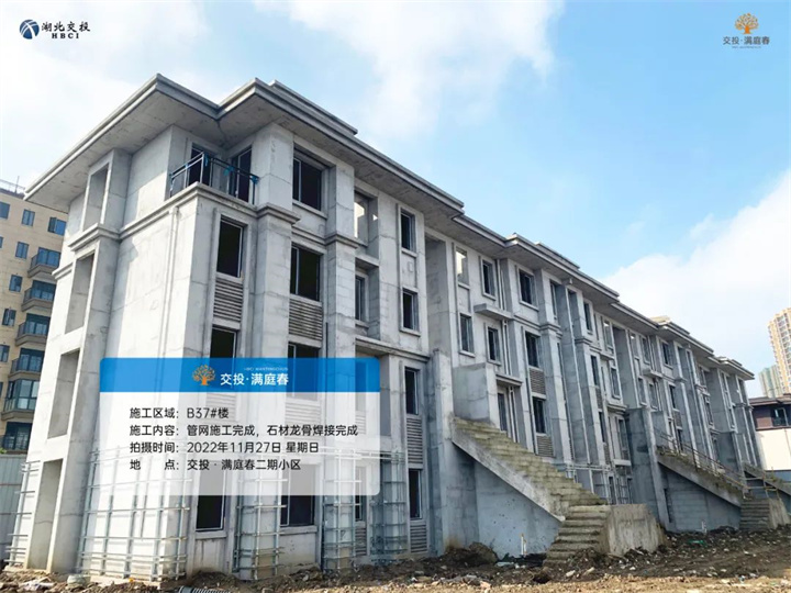 B37#楼管网施工完成,石材龙骨焊接完成;