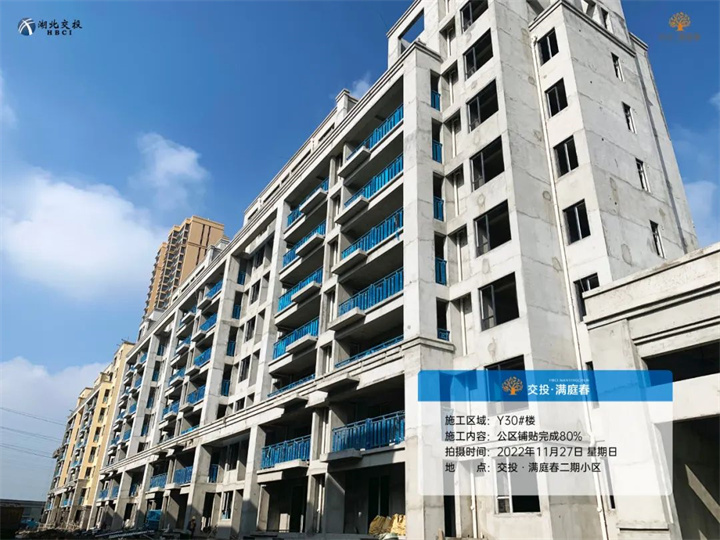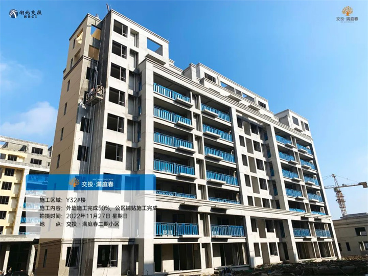 Y32#楼外墙施工完成50%,公区铺贴施工完成;