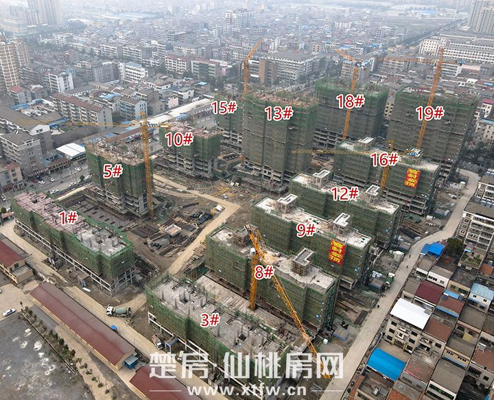 1#已建至6层、3#已建至5层、5#已建至9层、8#已封顶、9#已封顶