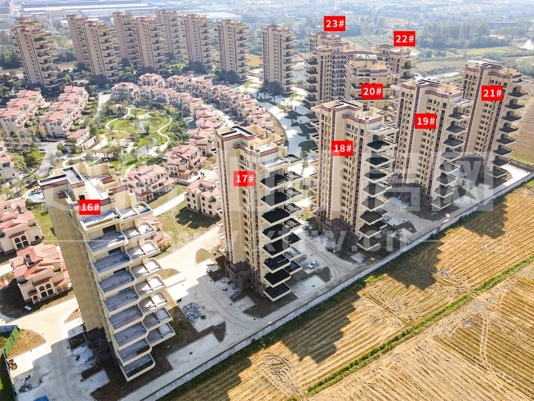 18#-23#、25#-27#、29#、31#楼九栋叠墅主体结构已封顶