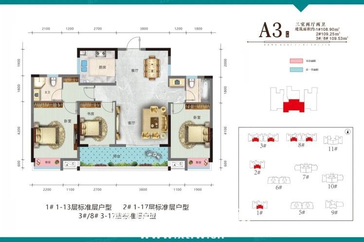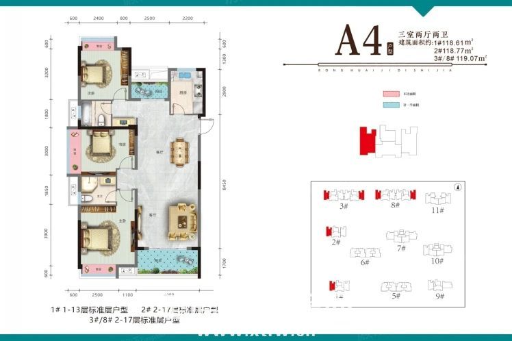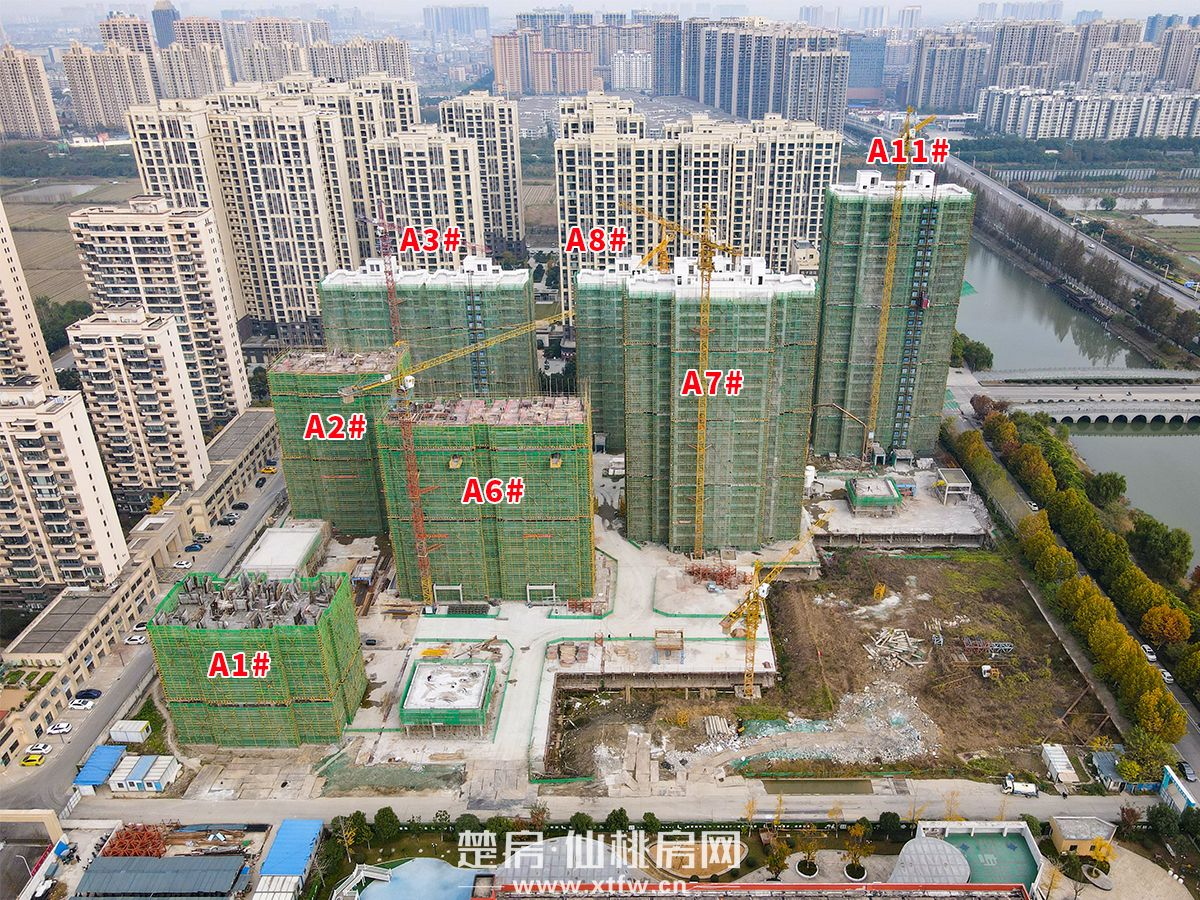 A3#、A8#楼主体结构已封顶,正在进行外墙保温施工(总层高17层)