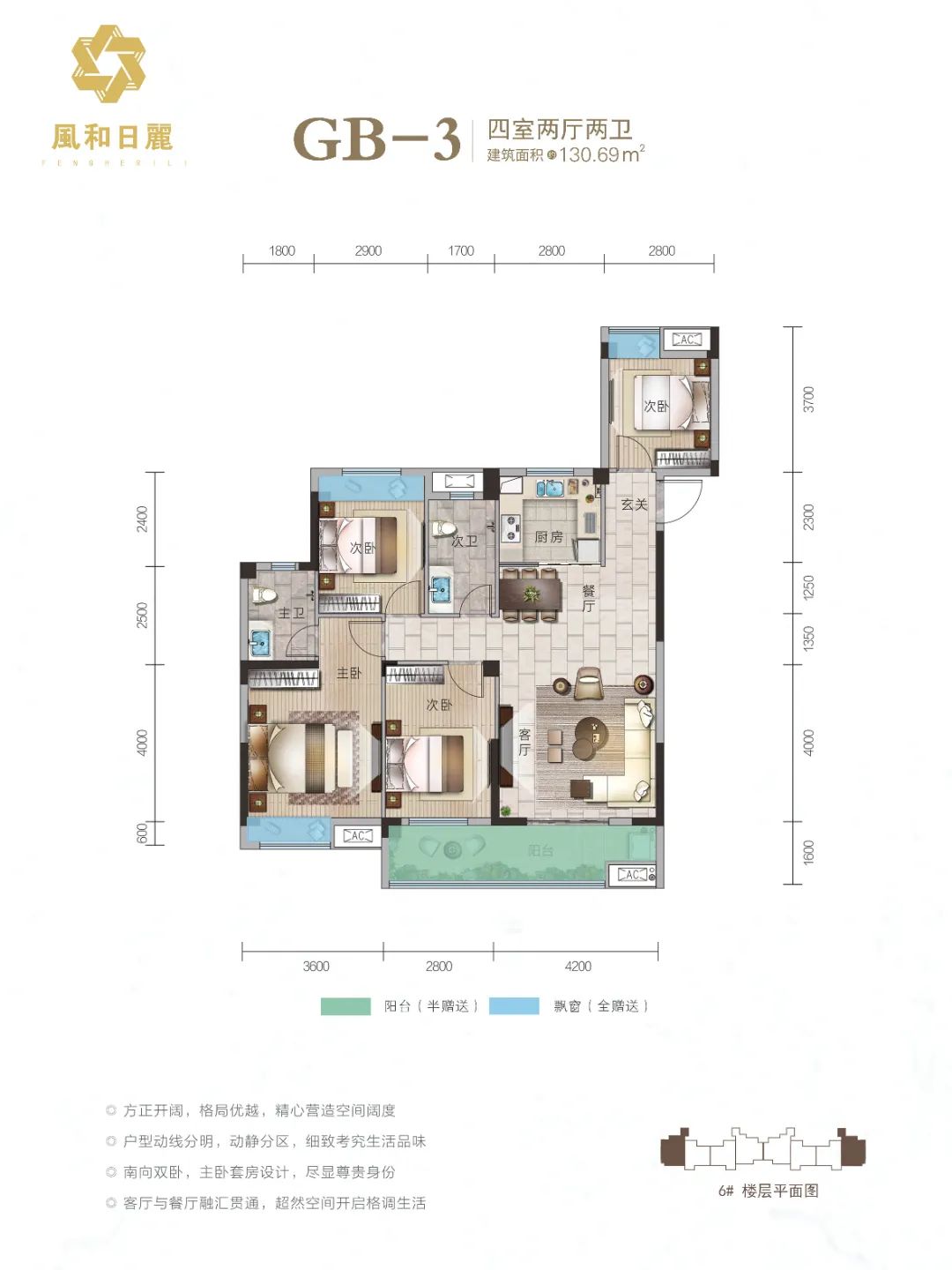 仙桃风和日丽正在加推的6#头排双景楼座,位居小区头排,通透采光,视野无遮挡。内揽新中式园林景观,阔绰楼距,尽享园中繁华盛景,对面即是仙桃三中(风和日丽校区),家有孩子,可目视上下学,安全感满满,楼幢优势不容小觑。