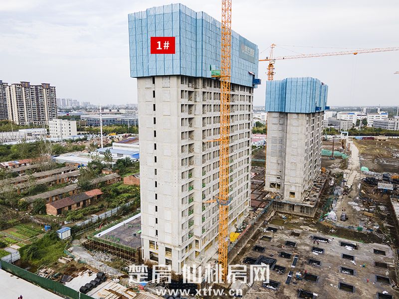 1#楼结构施工至20层墙柱、21层梁板,钢筋绑扎完成
