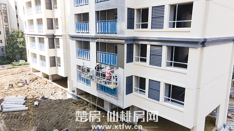 1#、3#楼外立面即将完工,正进行收尾作业
