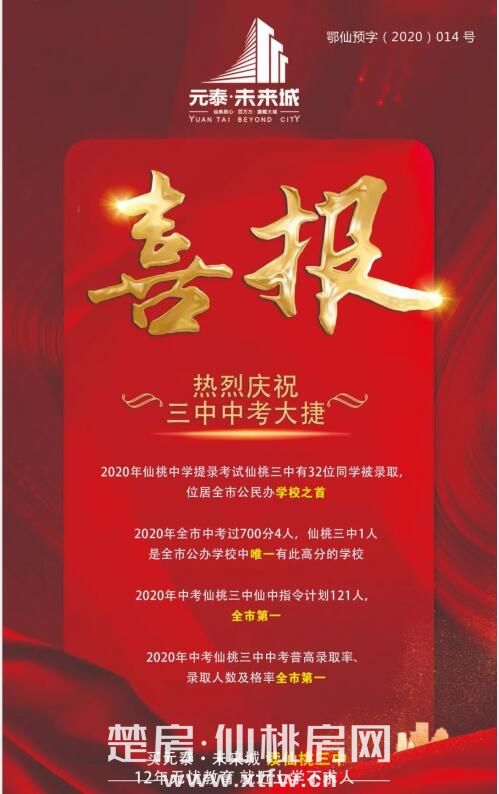2020年仙桃中学提录考试仙桃三中有32位同学被录取,位居全市公民办学校之首。