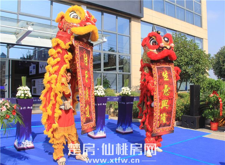 紧接着主持人邀约各位领导为瑞狮点睛,唤醒瑞狮,并共同参加此次城市展厅的开放剪彩仪式,用金剪为金科·御府剪出一条辉煌的蓬勃发展之路。表明千亿金科首入仙桃的诚意、金科·御府更迭仙桃人居的决心,也宣告着金科·御府正式启幕仙桃的美好人居时代!