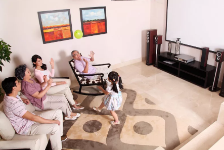 宽敞客厅,一家人围坐一起聊聊天或窝在沙发看一场电影。
