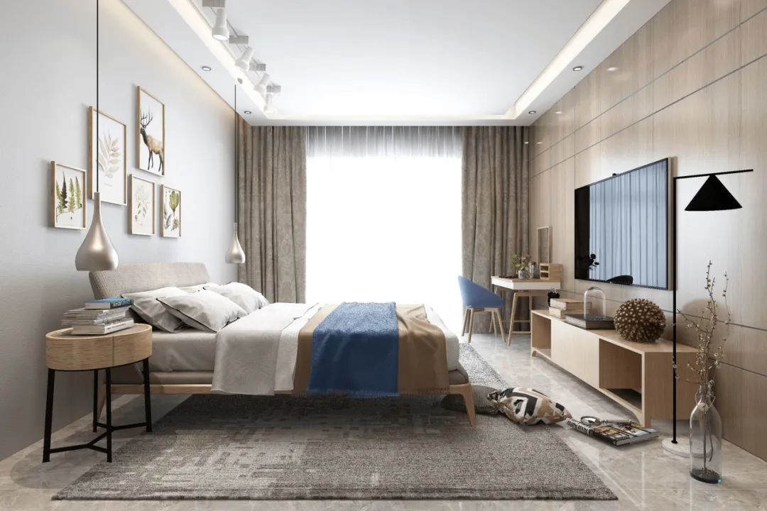 交投·当代满庭春ΜΟΜΛ电梯洋房尊贵主卧套房,大气的空间布局,搭配独立卫浴、大尺度观景飘窗,功能齐备,奢华之余更兼私密性,为夫妻二人打造私密的爱情空间。