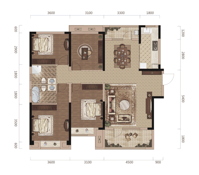 满庭春MOMΛ·当代城宽奢139㎡四房户型,成就三开间朝南的格局,让卧室和客厅更明亮更通透。冬日暖阳,夏日凉风,温暖与静谧,让生活的每处空间都充满幸福的味道。