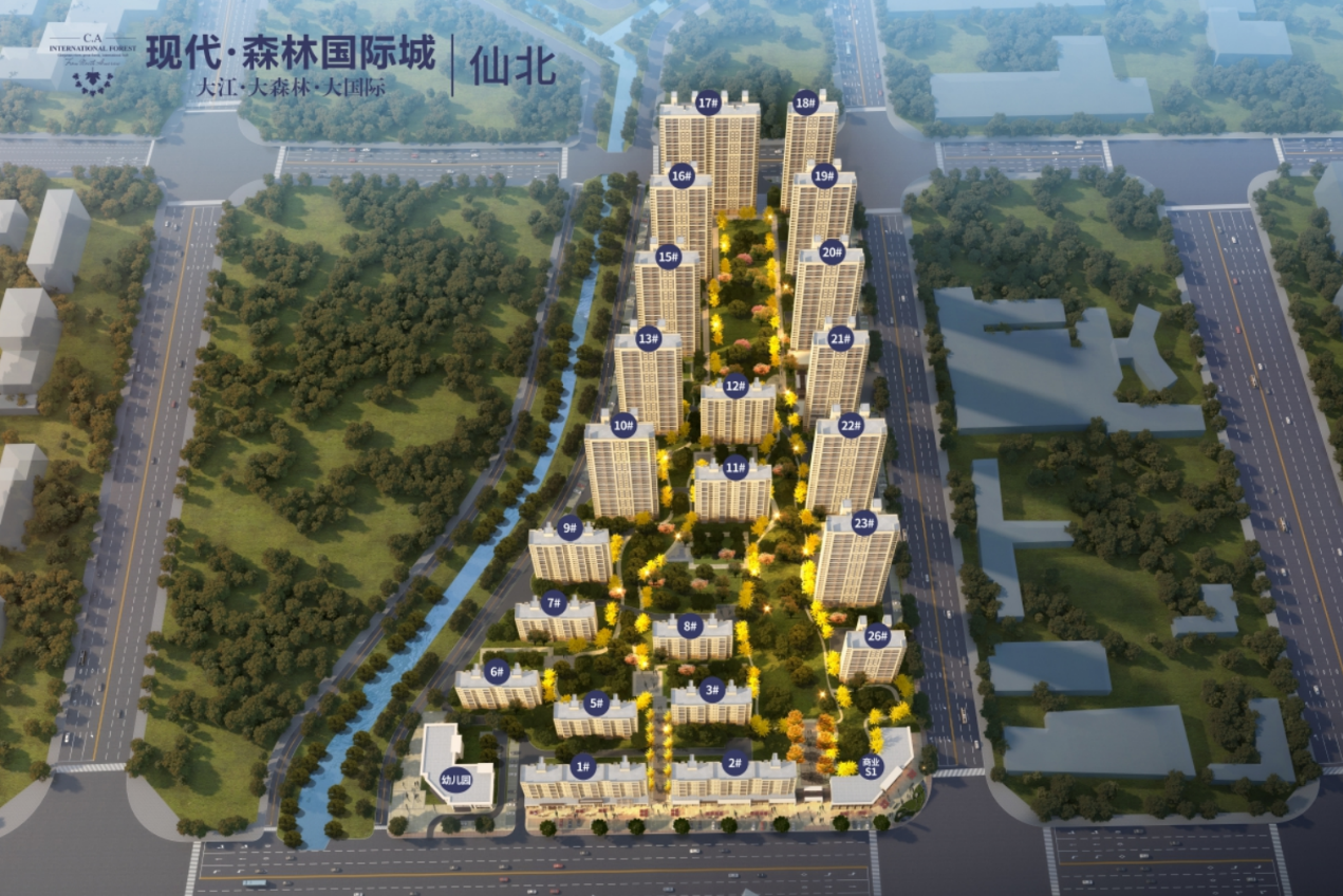 现代·森林国际城|仙北也同样如此,依托汉江河北岸而建,雄踞仙北滨江新城中芯,环江自然景观带以及周边生态园林环抱其中,数千亩江滩公园过桥即达。以其甄稀的自然资源+建筑的结合,草丰水美且地段优越,是名副其实的宜居之城。