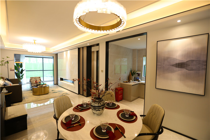 餐客厅作为展示主人身份的名片,承载朋友聚会、家人聚餐的重要时光。金科·御府,餐客双厅一体化设计,增加社交活动的空间尺度,无论是好友相聚,还是亲友来访,皆游刃有余。