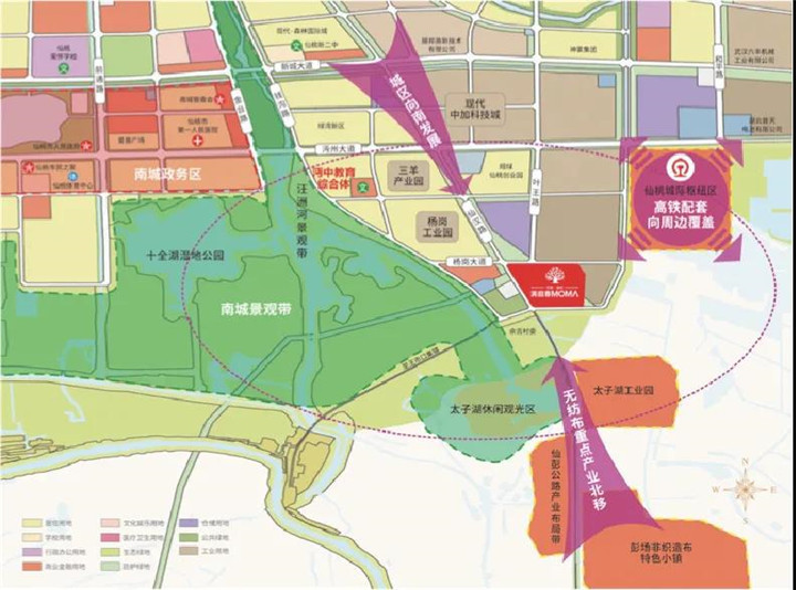 纵观南城发展布局,高新区无论是交通、政策、区位优势还是配套资源,都有着独特的价值优势。城南新区作为城市后起之秀,以新市民中心、市艺术中心、沔州中学教育综合体等全新配套设施为依托,围绕“生态城南、文化城南、改善城南”的区域建设,将成为整个仙桃楼市改善型高价值住宅聚集地。
