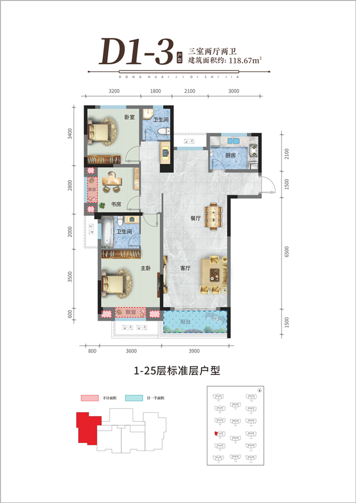 03 约118㎡三房两厅两卫配置