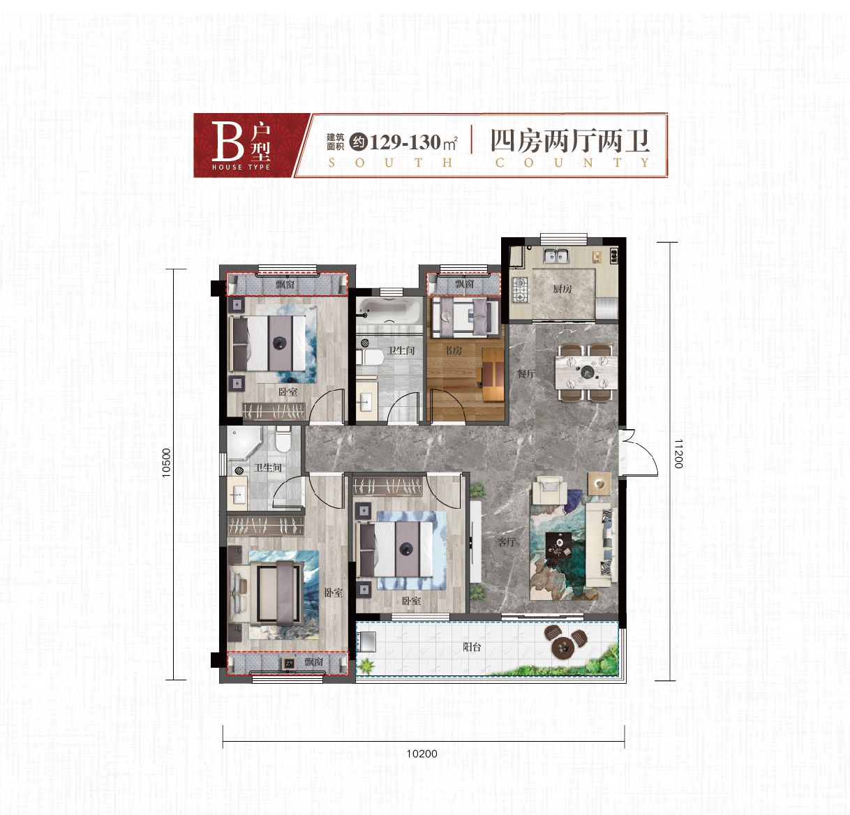 在产品上精筑以建面约97-130㎡舒居套三双卫与套四双卫为主,更有173-190平的顶层复式楼,点、板式结合设计,南北通透、空气对流,全系面积段的设计考量充分满足了置业者的多样需求。