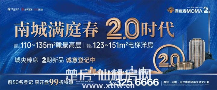 远见区域繁华未来,抢占城市流量风口,交投·当代满庭春MOMΛ2期焕新之作,一场生活方式的全面迭新,只为更好的仙桃而来,诚意登记全城盛启,前50名登记客户,享开盘99折优惠。
