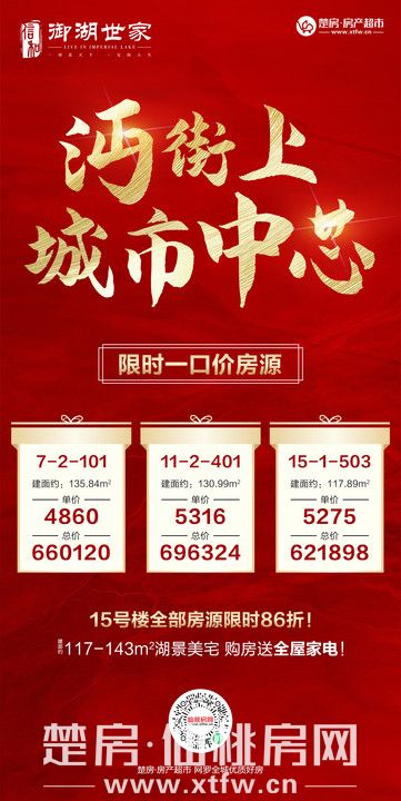 注:值得一提的是项目三期15号楼全部房源限时86折!建面约117-143㎡湖景美宅,购房送全屋家电!