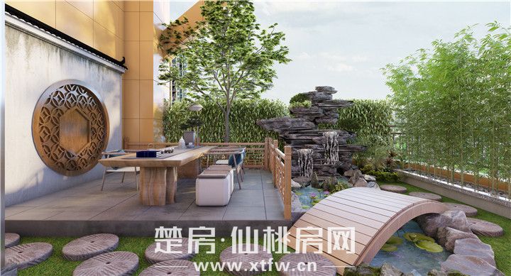 宽大的露台,可以种些花花草草,或者搭建点小艺术的建筑,设计一个小水池,养两三条的小鱼,也是相当惬意。