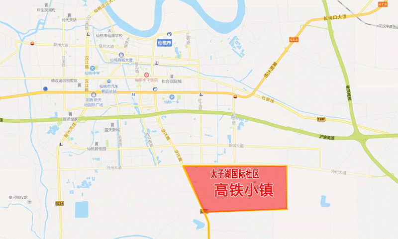 高铁小镇与仙桃城铁站相距较近,大概位置是北至沔州大道,西至彭场大道,南至体操大道,东至纱帽路,用地面积约8.27平方公里。其中以铁路车站为中芯,小镇核芯区范围约2.7平方公里。