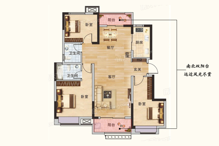 A户型规划南北双向阳台