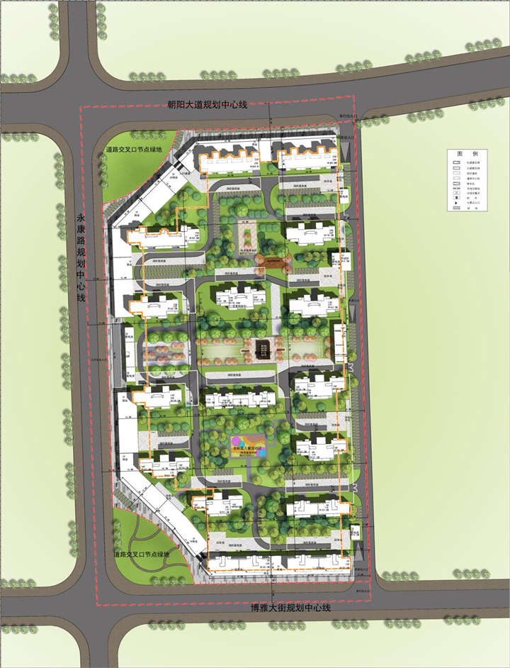 小区内部主入口处有一块约5000平的集中绿化带,在景观设计上也做到户户有景,移步换景,在植物配置整体上,采用部分的常青树、彩叶树和落叶树使得小区呈现四季更迭之美,以树、大小乔木、灌木、花、草五重植物形成纷叠错落的“五维景观”。蜿蜒绿道、缤纷花床、水边休憩茶座互为景中景,在欣赏美景的同时,也可以很好的过滤城市噪音和灰尘。