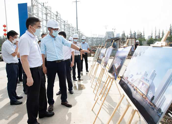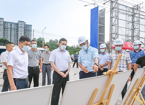 在工地现场视察过程中,仙桃吾悦广场项目总经理马跃为孙市长详细介绍了仙桃吾悦广场的整体规划、效果呈现、建设进程等项目基本情况。孙市长对仙桃吾悦广场整体打造策略和各项工作的推进予以充分的肯定及支持,同时提出项目团队要在做好疫情防控工作的前提下,安全生产、文明施工,加快项目建设进度,保障工程质量,努力打造精品工程。