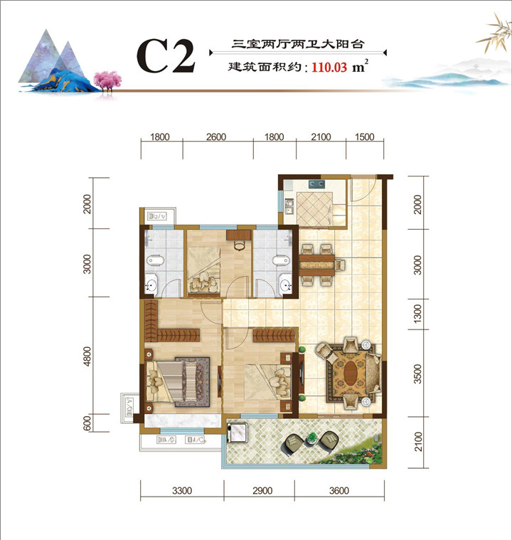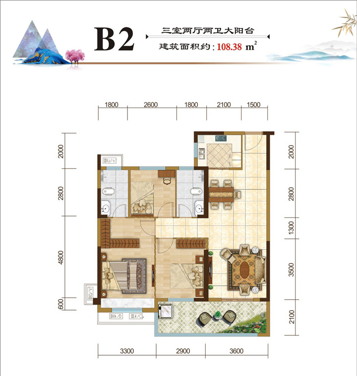 全三房设计,格局方正,通透五明,动线合理,特色2.4米阔景阳台、大飘窗设计,进一步的提升了居住者的舒适度,满足不同家庭的改善居住需求。