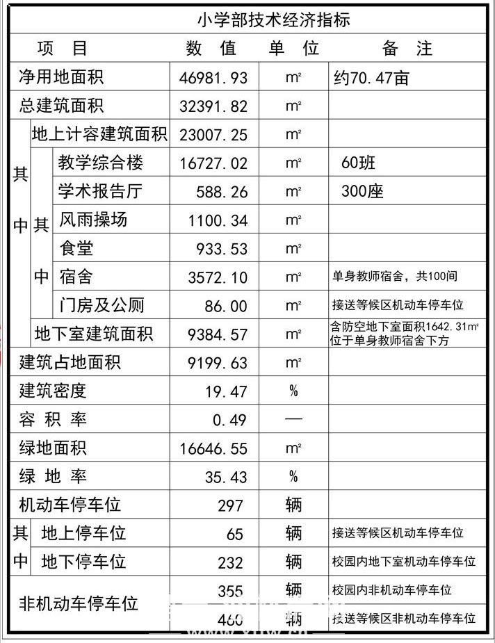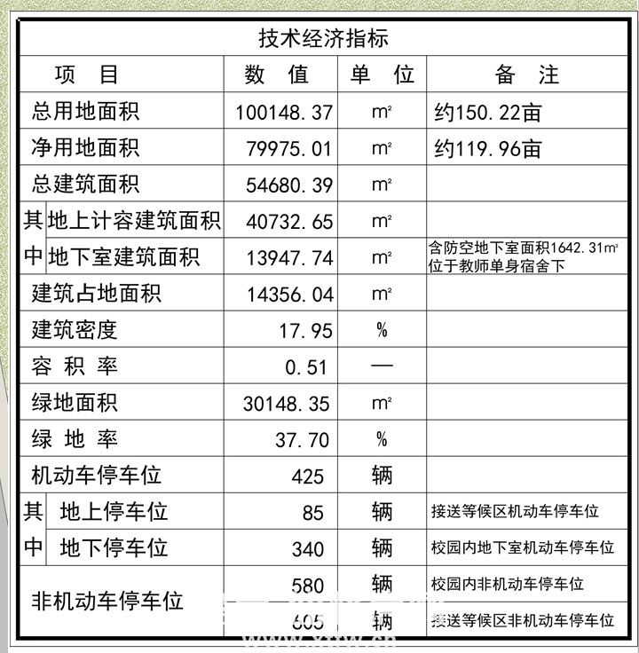 项目经济技术指标: