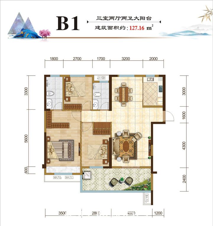 建筑面积约127㎡的户型