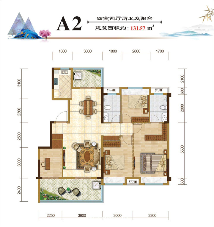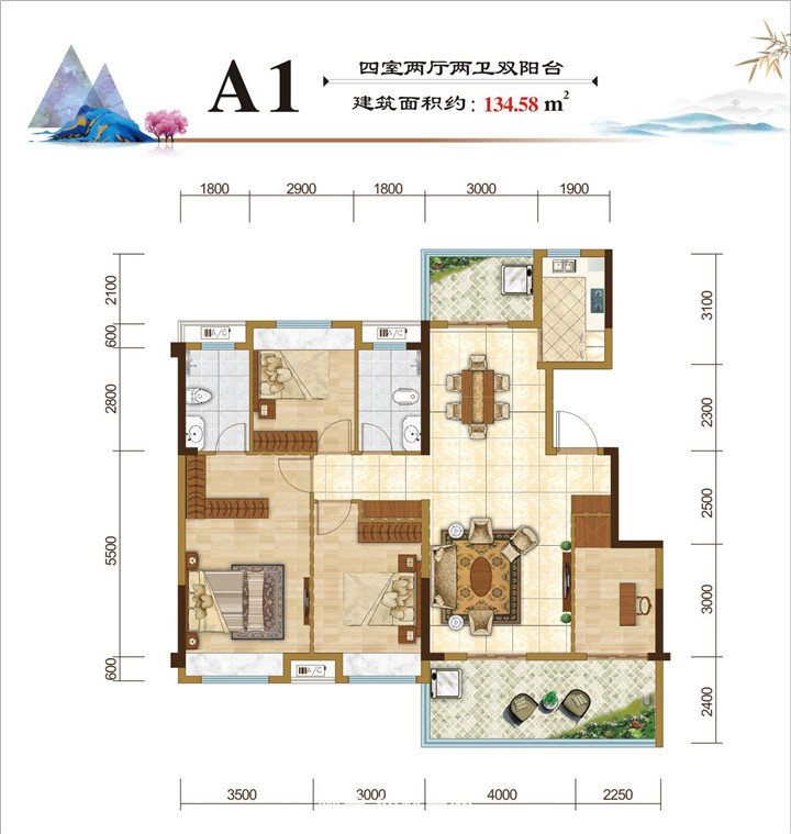 建筑面积约132㎡奢阔四居